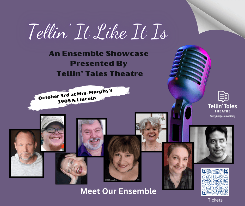 Join Tellin’ Tales Theatre for “Tellin’ it Like it Is,” a showcase of the Tellin’ Tales Ensemble. With over 25 years of experience collecting captivating stories, Tellin’ Tales presents a remarkable journey through thought provoking narratives. Our ensemble consists of seasoned performers and writers, both with and without disabilities, who will be bringing their favorite works to the stage. This guarantees a memorable evening filled with laughter and meaningful connections.
